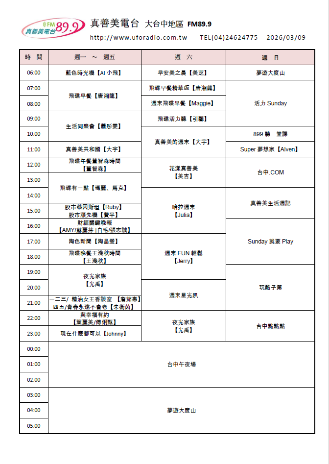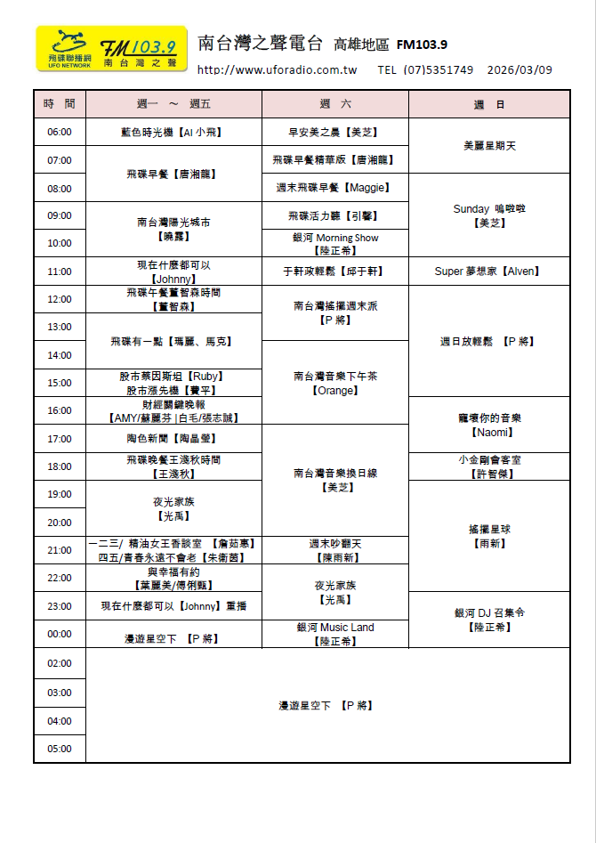 分台節目表